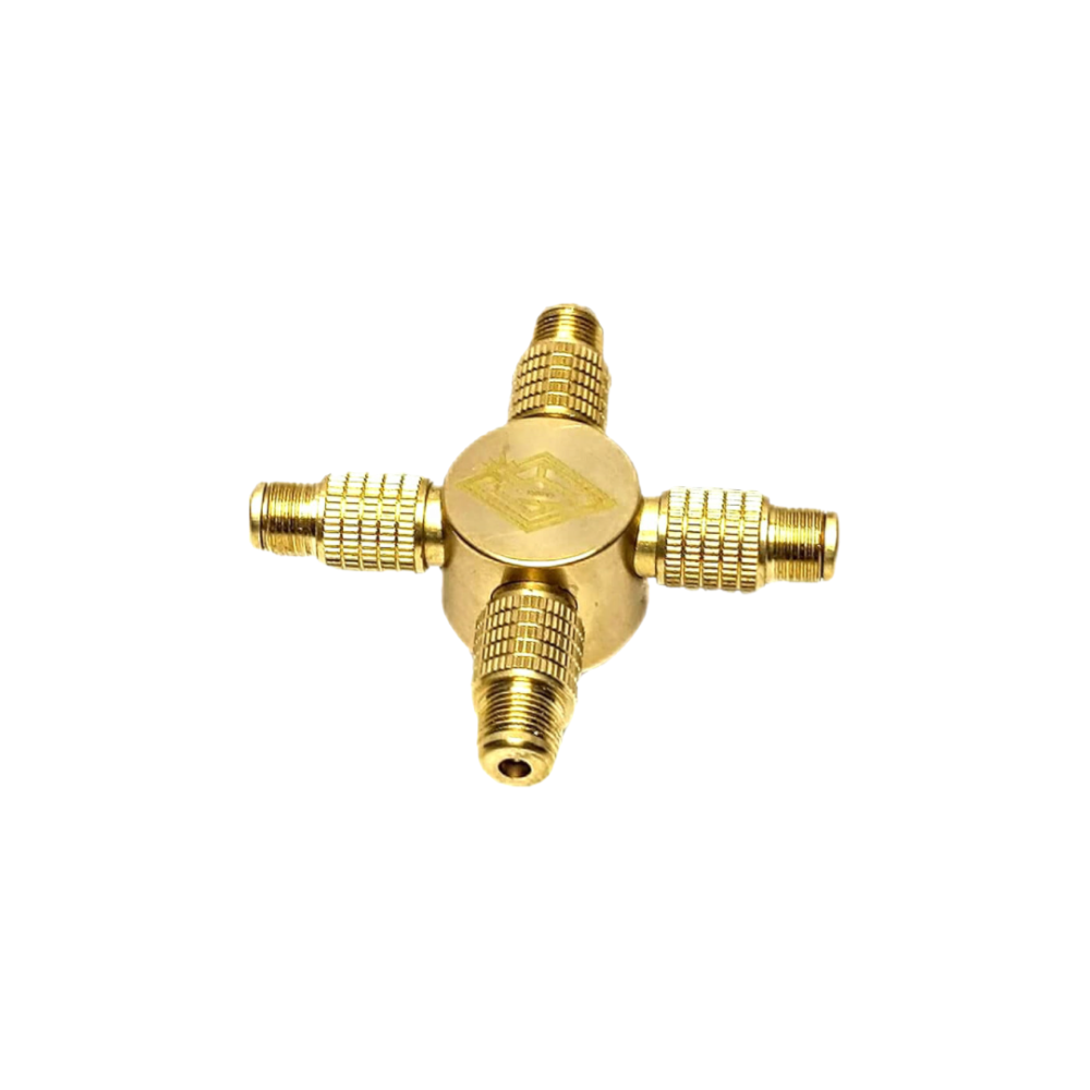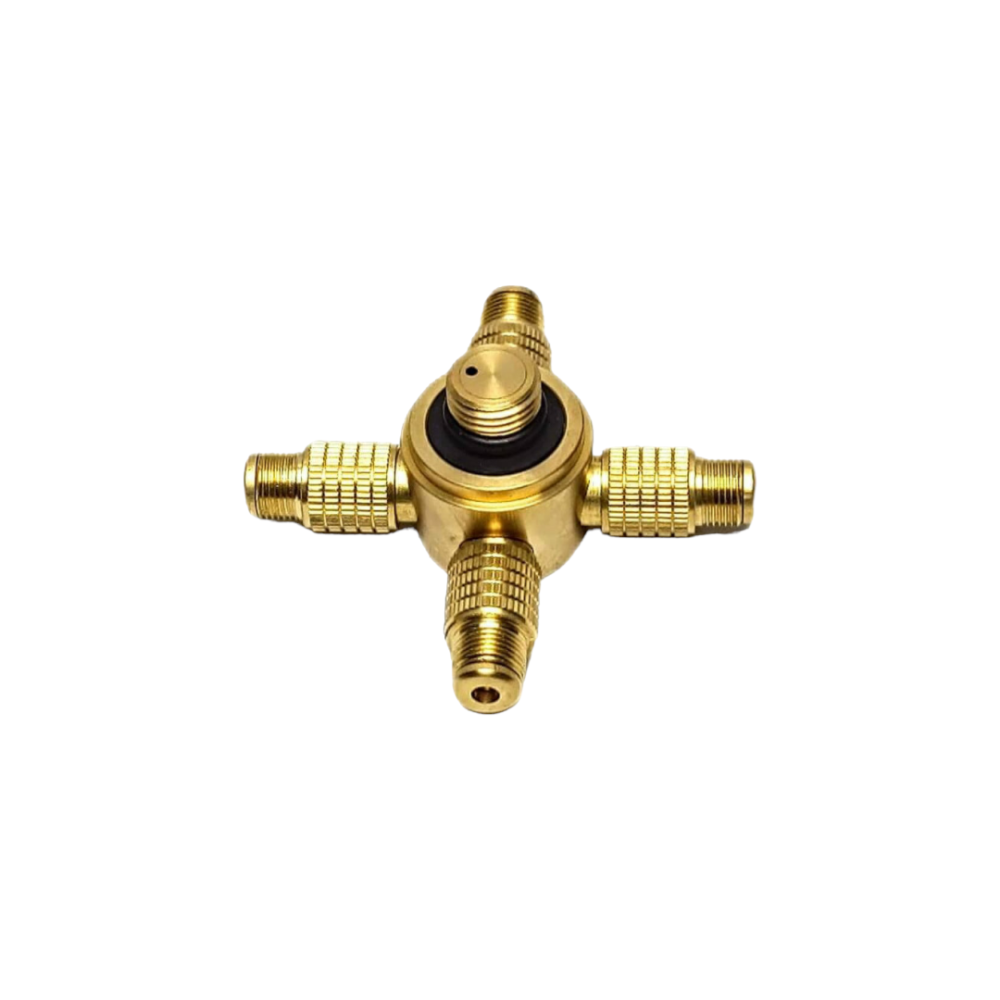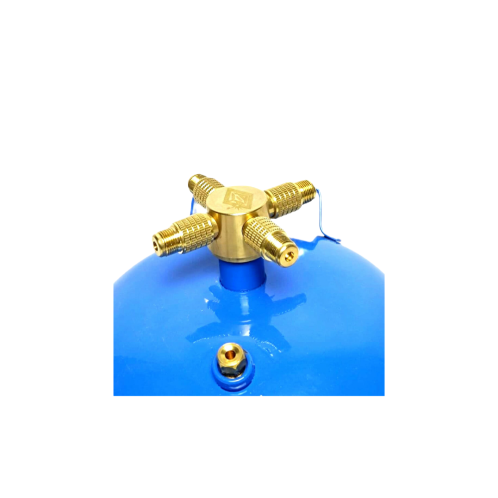 قسام 4 خطوط بصمام لدبة الغاز الزرقاء لتشغيل ثلاث مواقد سفرية في نفس اللحظة (المواقد التي تعمل على الدبة الكوري ) ميزة هذه التحويلة ان كل قسام له صمام مما يجعلك قادرا على تشغيل موقد فقط من خلالها دون ان تخاف من التهريب من باقي رؤوس التحويلة وايضا موقد وهكذا